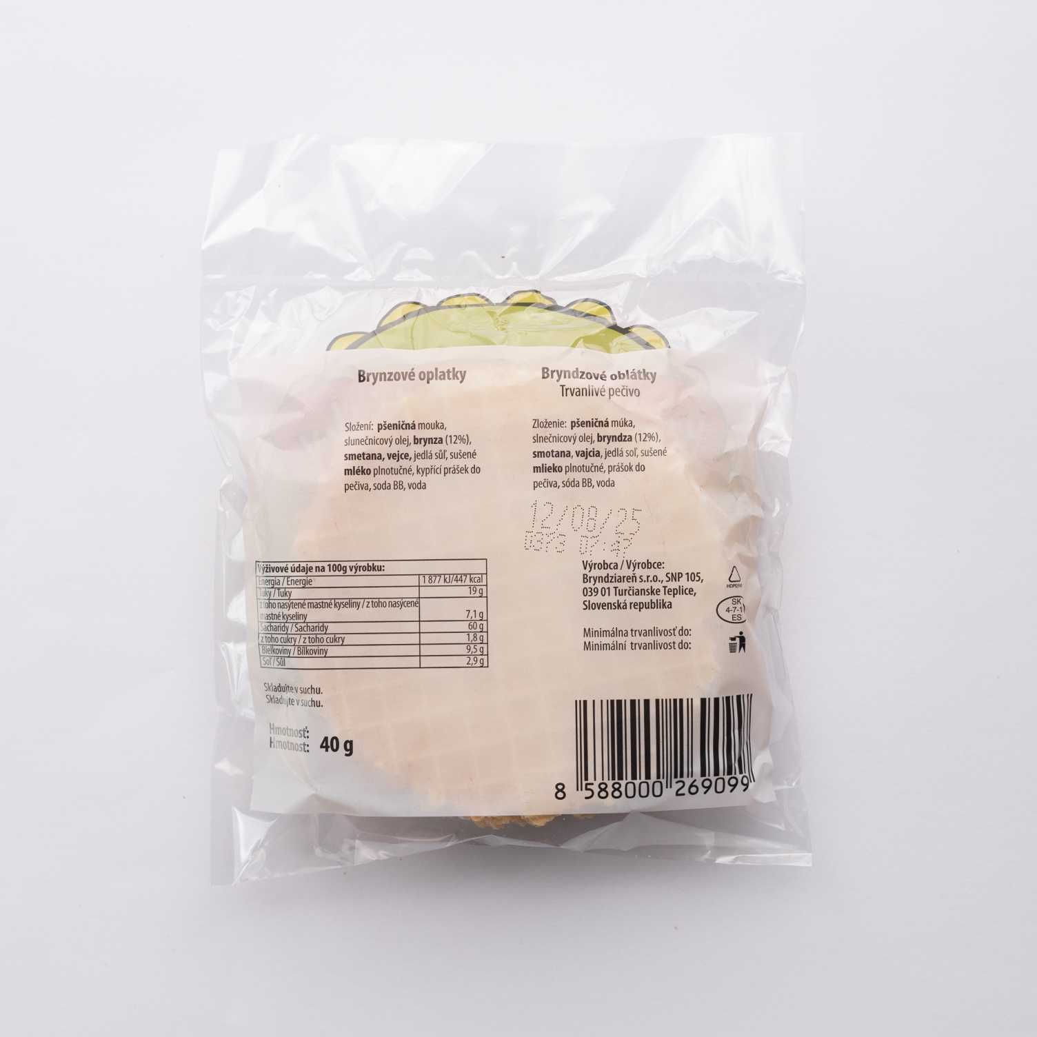 Zloženie: pšeničná múka, slnečnicový olej, bryndza (12%), smotana, vajcia, jedlá soľ, sušené mlieko plnotučné, prášok do pečiva, sóda BB, voda.