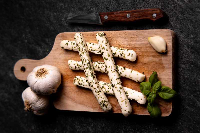 Zloženie: mliekarenský hrudkový syr, oxid siričitý, jedlá soľ, pitná voda, cesnak granuovaný sušený, medvedí cesnak, pažítka sušená, petržlenová vňať.