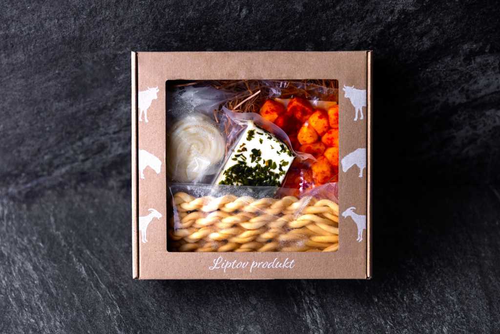 Balenie obsahuje: Liptovské korbáčiky - údené, Liptovská parenica - neúdená, Syrové guličky - paprikové, Kozí syr - medvedí cesnak
