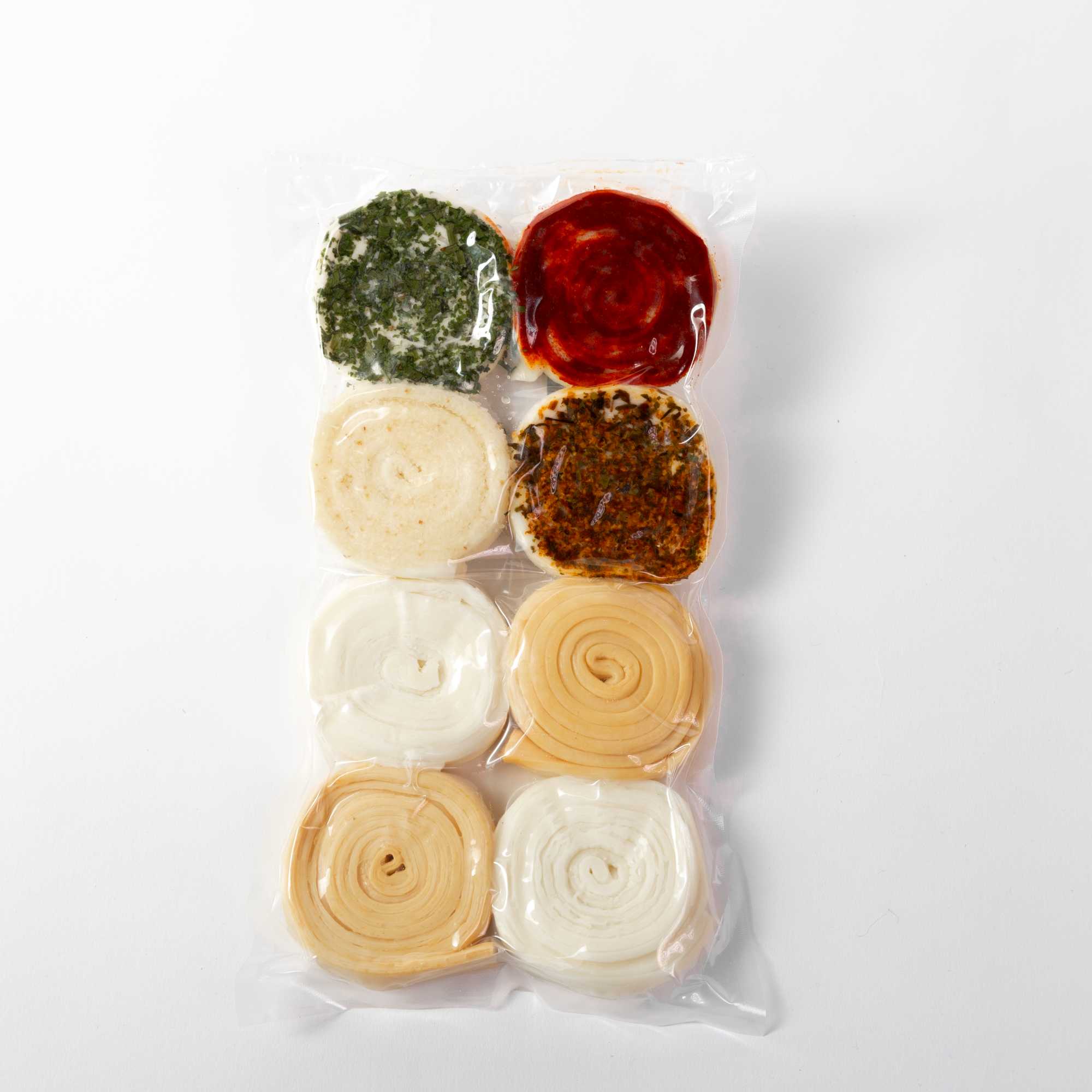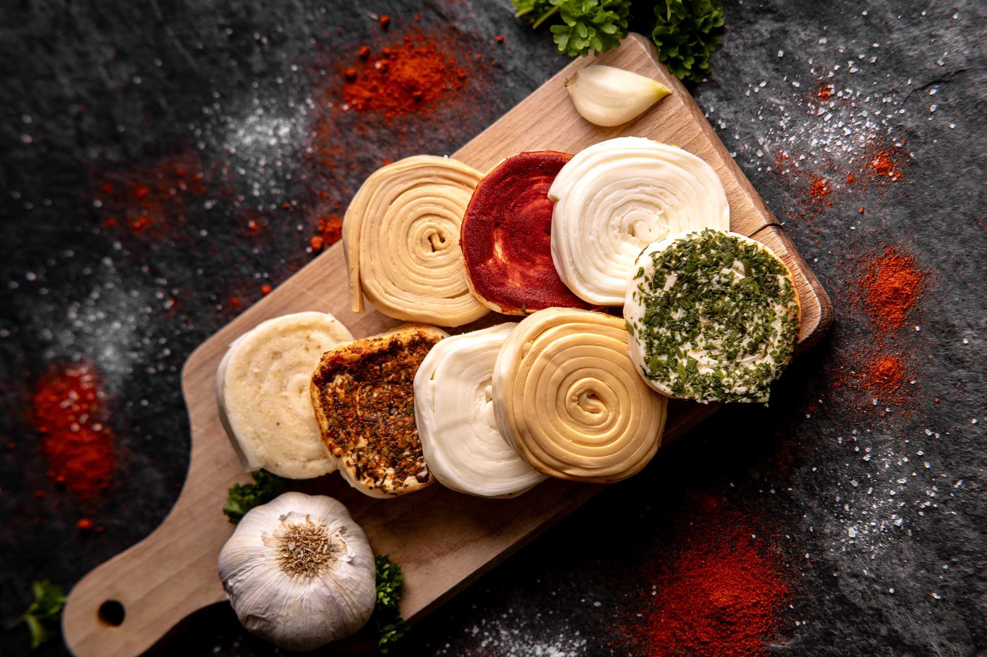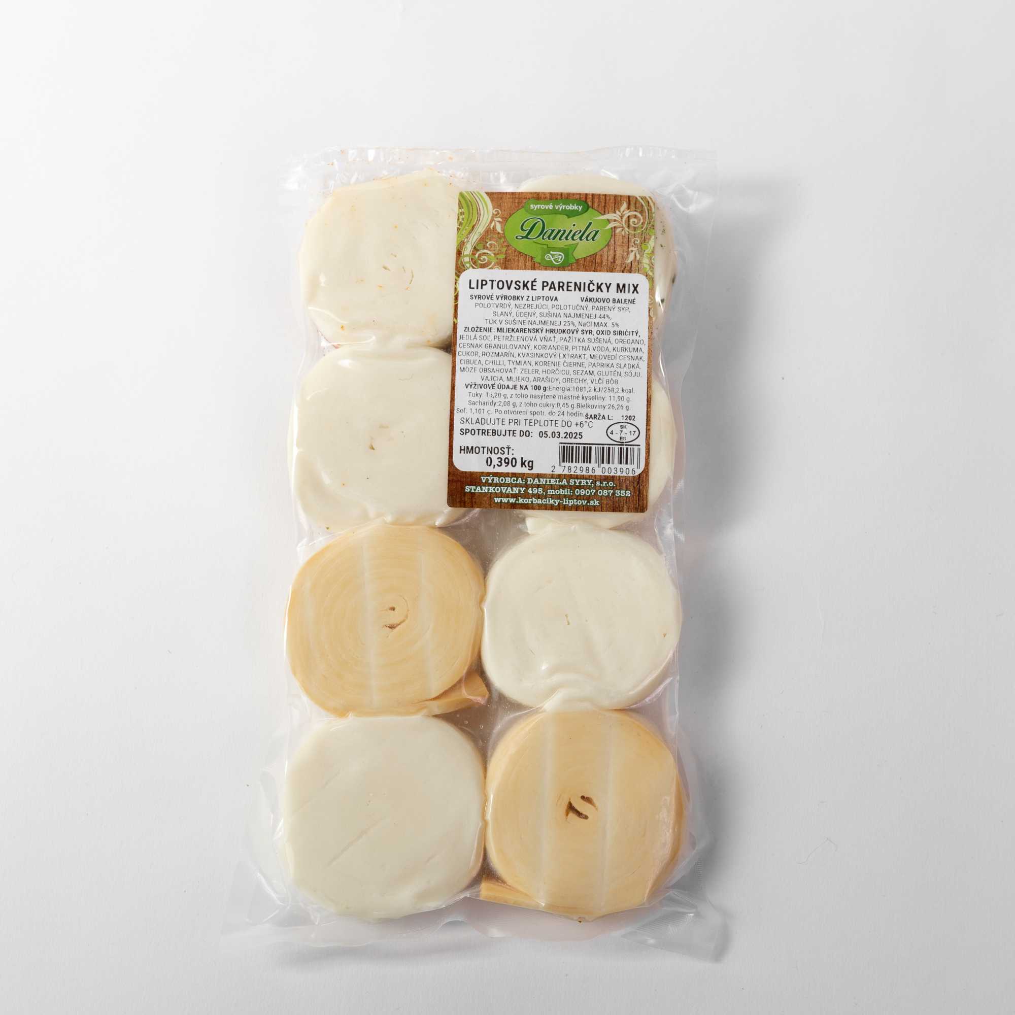Zloženie: mliekarenský hrudkový syr, oxid siričitý, jedlá soľ, pitná voda, petržlenová vňať, pažítka sušená, oregano, cesnak granulovaný, koriander, kurkuma, cukor, rozmarín, kvasinkový extrakt, medvedí cesnak, cibuľa, chilli, tymian, korenie čierne, paprika sladká.